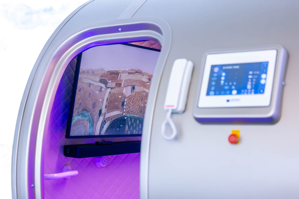 In der OXY Lounge werden – je nach Programm – HBOT, Chromotherapie und PEMF kombiniert. Farben und Magnetfelder können die Entspannung vertiefen und die Wohlfühlwirkung ergänzen.